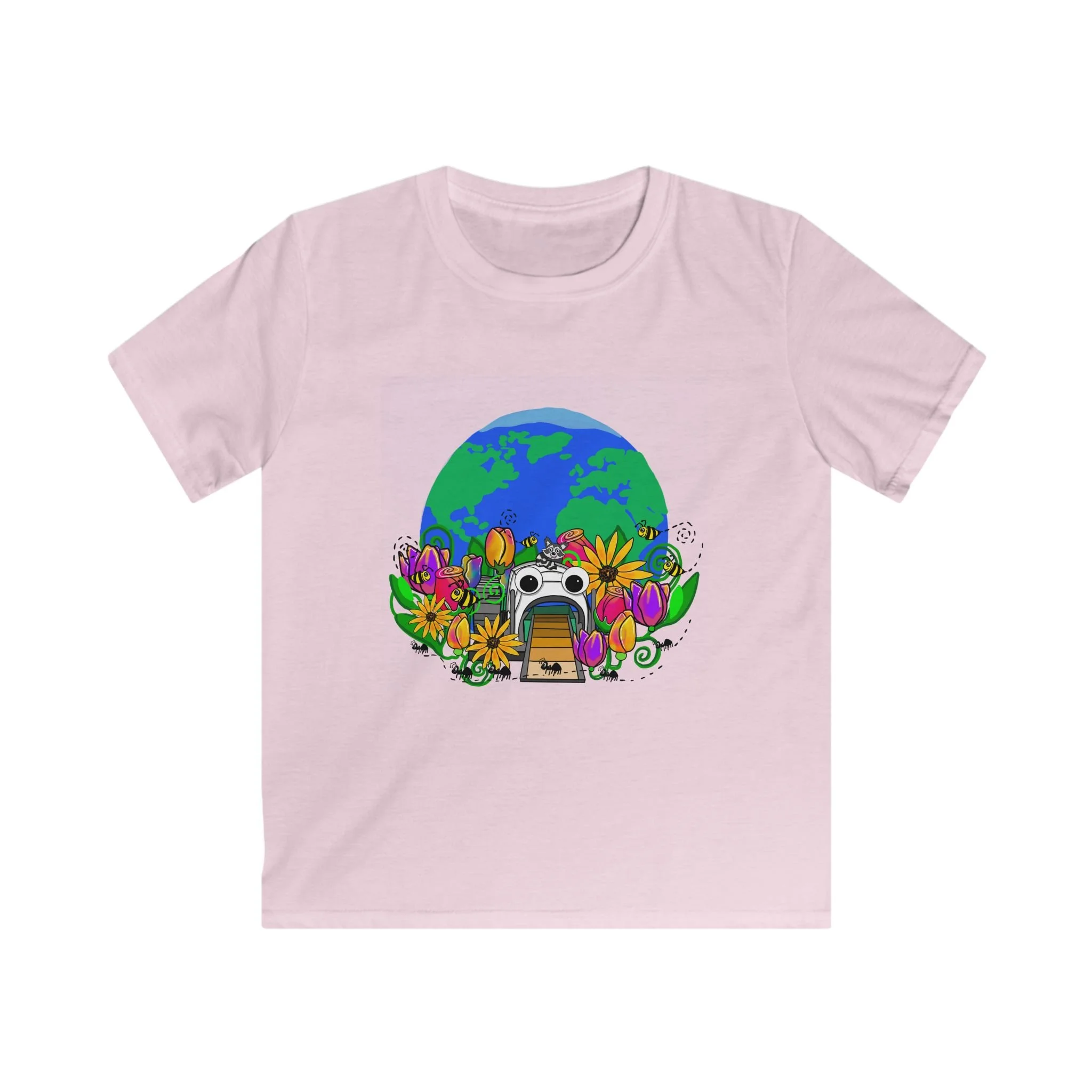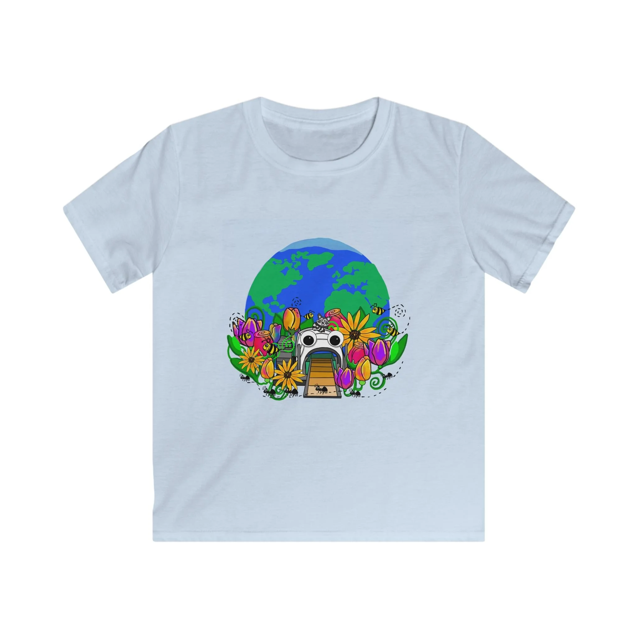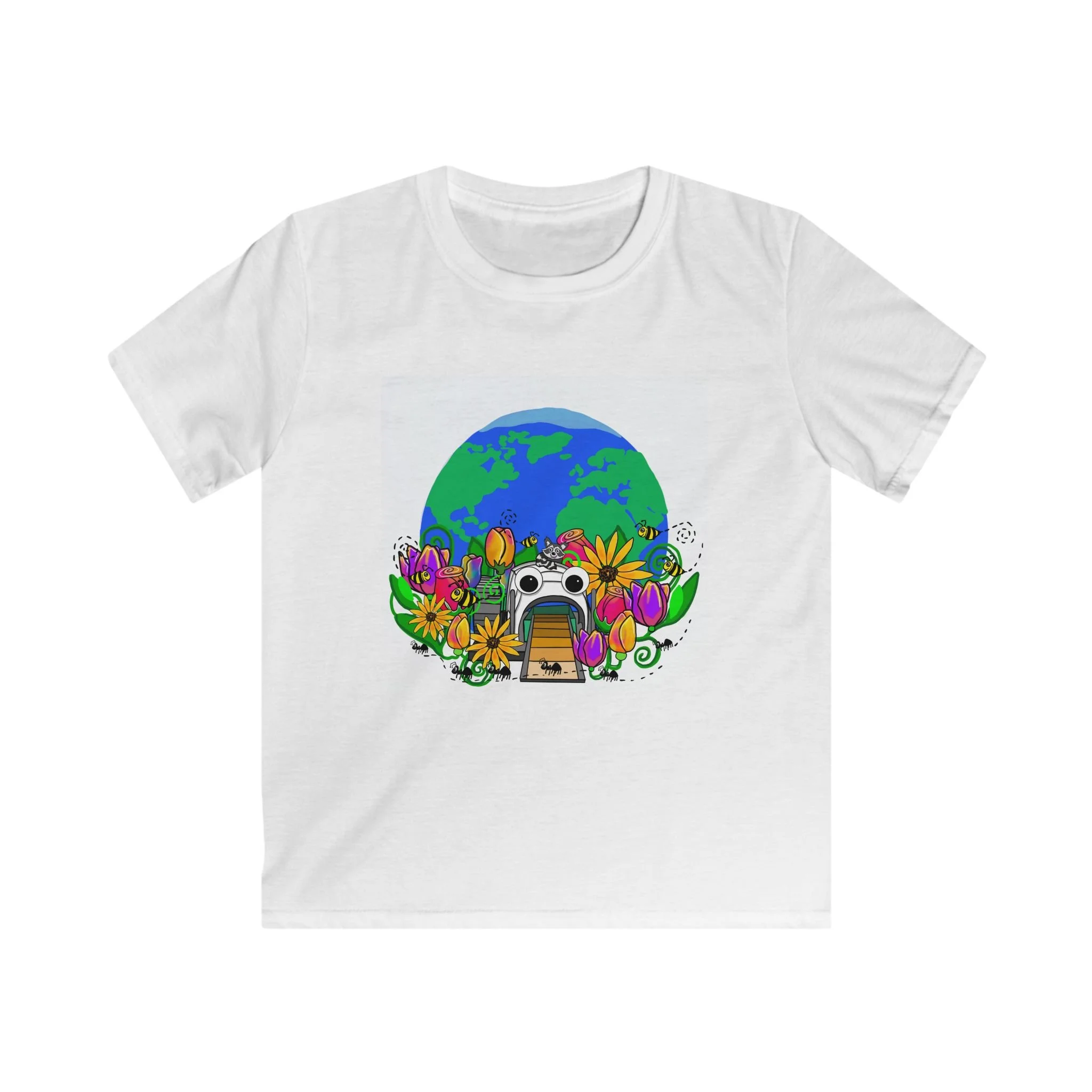 It's Mr. Trash Wheel's world, we just live in it. This cute shirt features a happy little Mr. Trash Wheel world full of flora and friends working to keep our planet clean!